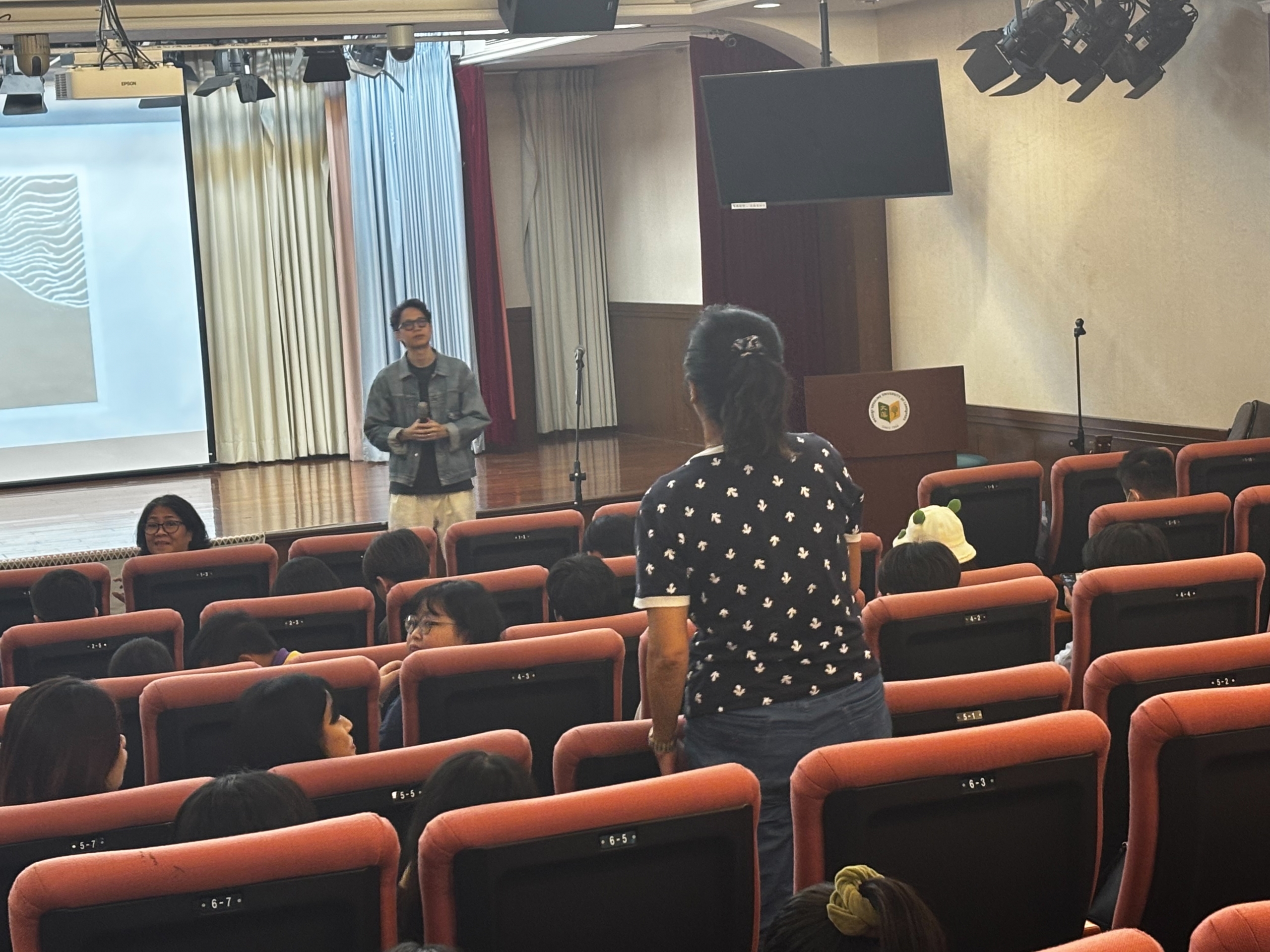 講座中,張老師也透過音樂的片段,展現他如何以旋律與歌聲唱出尋根的心路歷程,讓現場師生在他的敘述與音樂中感受到情感與文化的共鳴。透過本次講座,師生們不僅更深入體會創作與音樂在自我認同中的重要性,也在張老師真摯的分享中,重新思考「我是誰」與「從哪裡來」的意義。從字詞到旋律,從山海到內心,大家都在其中找到屬於自己的文化連結與心靈歸屬。