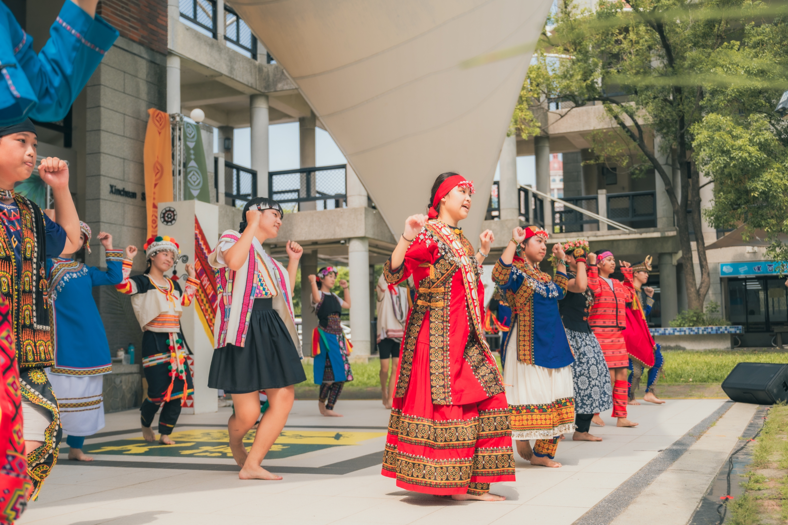 文藻外大原民周開幕式中,特別邀請屏東佳興傳統古謠隊蒞校演出,以排灣族祈福儀式與古調吟唱揭開序幕,悠揚歌聲展現原住民族對自然與天地的敬意,也為活動增添濃厚的文化氛圍。文藻原住民族學生資源中心志工團與山地服務社帶來融合多族群特色的舞蹈表演,其中布農族之舞〈布古拉夫〉傳達承接祖靈智慧、勇敢面對逆境的精神,象徵跨族群團結與文化連結,獲得現場觀眾熱烈掌聲,氣氛溫馨熱絡。